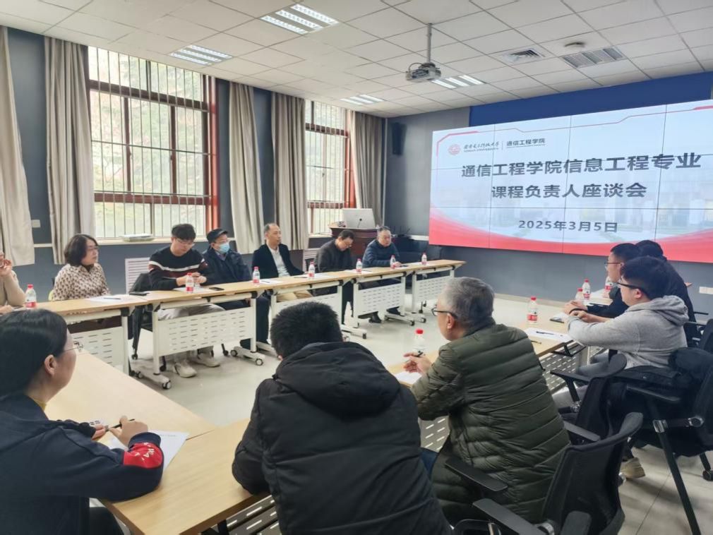 2025年3月5日下午,教师代表座谈会在北校区主楼2区119召开。此次座谈会由刘刚教授主持,汇集信息工程专业所有核心课程负责人。会上,教师围绕加强课程内容与时俱进、与产业需求紧密衔接、与人工智能技术深度融合等议题展开了热烈的讨论。他们一致认为打造特色课程、引企入课堂、健全课程考核评价机制等是当前亟待解决的问题。