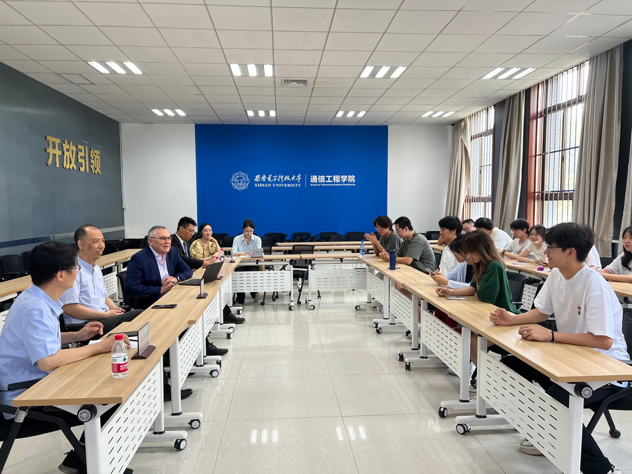 (通讯员 施梦茹 任星霖)5月21日,英国赫瑞瓦特大学工程及物理科学学院院长Prof. Igor Guz、英国赫瑞瓦特大学中国和东亚办公室首席代表王忠义先生、中国和东亚办公室合作伙伴经理王子博一行来西安电子科技大学通信工程学院交流访问。通信工程学院执行院长李云松教授在北校区主楼2区219会议室会见了代表团一行,并与瓦特大学Igor院长召开项目运行会议。通信工程学院副院长顾华玺教授、项目中方主任田斌教授、学院刘伟教授、学院国际化干事及中英合作办学办公室全体成员共同参会。会上双方就项目课程引进、外教授课情况、项目延期及合同续签、项目十周年庆典、博士联合培养等内容进行了深入交流讨论。
