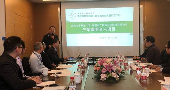 随后,西安电子科技大学电子信息与通信工程学科专业国家级实验教学示范中心主任陈彦辉教授详细介绍了广和通与西电的产学协同育人项目,建议在教育部提出的新工科思想体制下,以工程实践作为起点,将学校教育贯穿其中,培养出能够为国家、行业做贡献、能够领导行业的实干家。西电与广和通强强联合,将产业与教学有机结合起来,产学协同育人。这次的校企协作是将学校和企业联合起来的良好开端,希望双方能建立长期地、互惠互利的广泛合作。以企业的实际需求支撑本科教学,达成实践与教学双通道连接,提升企业和高校的国际竞争力,塑造具备项目管理、工程管理能力的复合型创新人才,为学生未来就业打下扎实的基础。校企合作是引领未来高校和产业的重要发展方向。