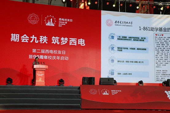 随后,在远望谷体育馆举办的大会上,通院校友曹正文作为代表讲述了通信工程学院1-861班助学基金设立15载背后的感人故事,无私相助,感恩师友,代代传承,这是西电生生不灭的精神火种。值得一提的是,在上台致辞环节中,四位分别代表毕业40年、30年、20年、10年的优秀校友,他们其中三位都毕业于通信工程学院。