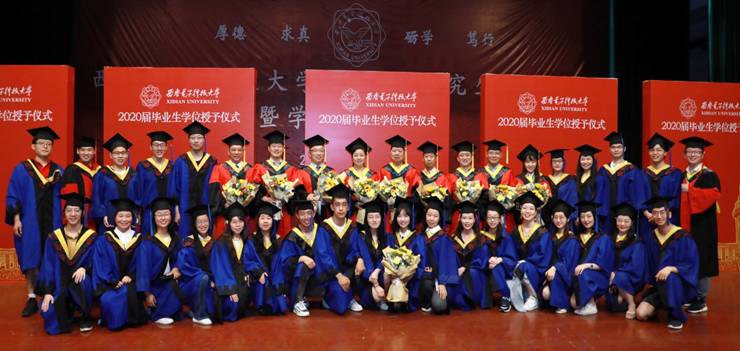 通信工程学院党委书记李赞、副院长顾华玺分别宣读了通信工程学院2020届本科生、研究生学位授予决定,与会嘉宾共同为毕业生逐拨穗授位。参加授位的同学们依次上台接受授位以及老师们的祝福,并与老师拍照留念。