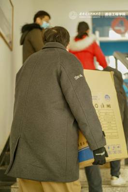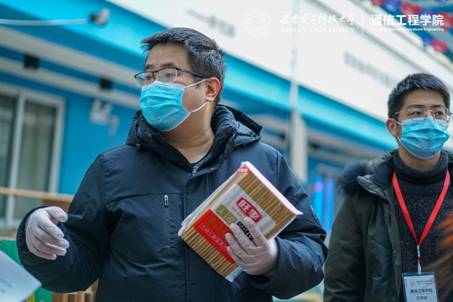 通信工程学院辅导员积极组织号召党员先锋志愿者走访各宿舍,为同学们分发物资,讲解学校防疫政策,调研学生生活状况。党员先锋岗的同学们在学院领导和辅导员老师的指导下,恪尽职守,时刻坚守在抗疫一线。搬运抗疫物资、清理楼内卫生、布置通院防疫工作台、检查口罩佩戴情况、管控人员出入……处处都有他们的身影。