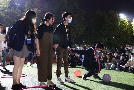 观看节目之余,穿插的抢板凳、踩气球等互动游戏引来同学们的踊跃参与。同学们迈着轻快的步伐走到台前,面对不同的游戏,不论团结配合,还是独当一面,始终用最佳的状态融入游戏,在获得奖品的同时,也留下了美好的记忆。