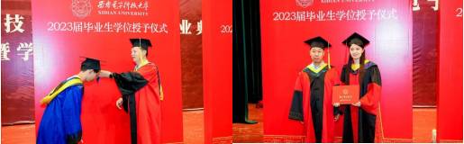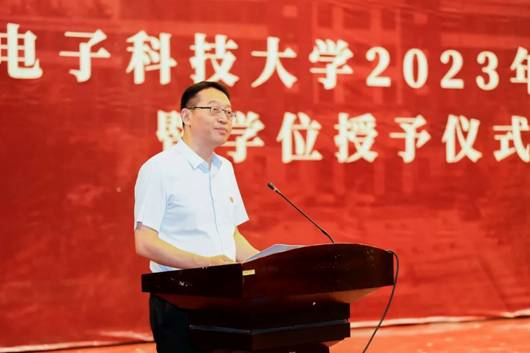 授位仪式上,尚韬宣读了西安电子科技大学通信工程学院2023届研究生学位授予决定。研究生导师代表杨龙副教授回顾了与毕业生们共同成长的历程,肯定了同学们在学习、科研、创新等方面取得的优异成绩,希望大家在未来的工作和生活中继续发扬学院的优良传统,为国家和社会做出更大贡献。毕业生代表张甜代表全体毕业生向学院和导师们的培养表示衷心的感谢,她回忆了在学院度过的美好时光,并表示在今后的工作和生活中,继续传承西电的红色基因,自觉将小我融入大我,立志科技报国,承担好作为新时代西军电人的责任和使命。