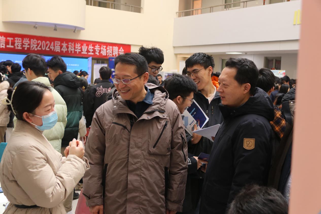 通信工程学院党委书记魏峻、执行院长李云松等学院领导深入招聘会现场,认真听取用人单位对学院就业工作的意见,详细了解当前企业人才招聘需求、人才市场状况以及毕业生投递简历等情况;同时与毕业生亲切交流,询问参会毕业生的求职情况,关心同学们的求职进展和就业意向,鼓励大家要充满信心、积极主动,尽快找到满意的工作。