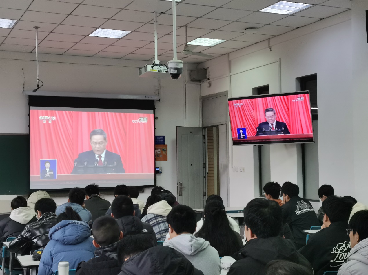 (通讯员 王思阳)3月5日上午9时,十四届全国人大二次会议在北京人民大会堂开幕,国务院总理李强代表国务院向十四届全国人大二次会议作政府工作报告。通信工程学院党委以多种形式组织学院全体师生观看收听开幕会。学院面向全体教职工设立了线下观看会议室,并以支部为单位,结合“三会一课”,组织学生通过电视、网络、手机客户端等多种途径深刻学习领会大会精神。