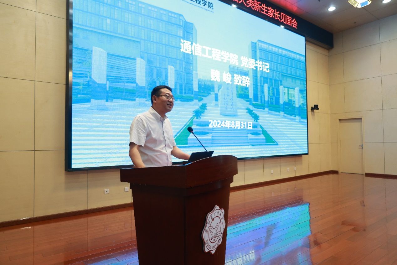 (通讯员 王星雨)为欢迎2024级通信大类本科生入学西安电子科技大学通信工程学院,帮助学生及家长了解学院情况,加强家校沟通,形成育人合力,助力学生成长成才。按照学校部署,学院积极响应,精心筹备,8月31日下午,学院2024级通信大类新生家长见面会在南校区行政楼210报告厅举行,学院党委书记魏峻、执行院长李云松,教学相关老师及2024级辅导员参与本次见面会,见面会由学院党委副书记沈强主持。