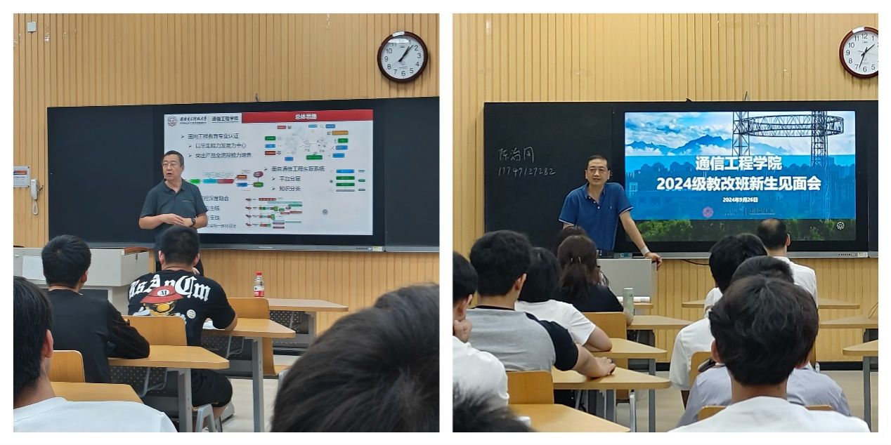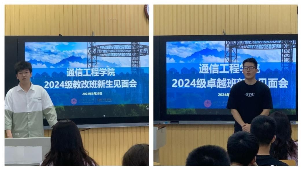 (通讯员 顾家榕)9月26日,通信工程学院2024级通信工程卓越班和教改班新生见面会在南校区C-131教室和C-132教室召开。通信工程学院副院长顾华玺、卓越班责任教授陈彦辉、教改班责任教授陈健、华为企业导师代表王远强、科研导师代表张铭津、2021级优秀学长代表、新生辅导员及2024级通信工程教改班与卓越班全体新生参加了见面会。